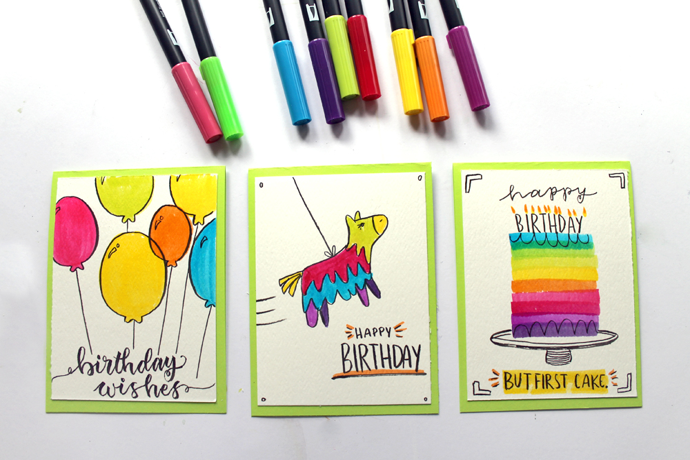 These dual brush pens from Tombow make birthday cards super easy! See how you can make all three cards in under 5 minutes.