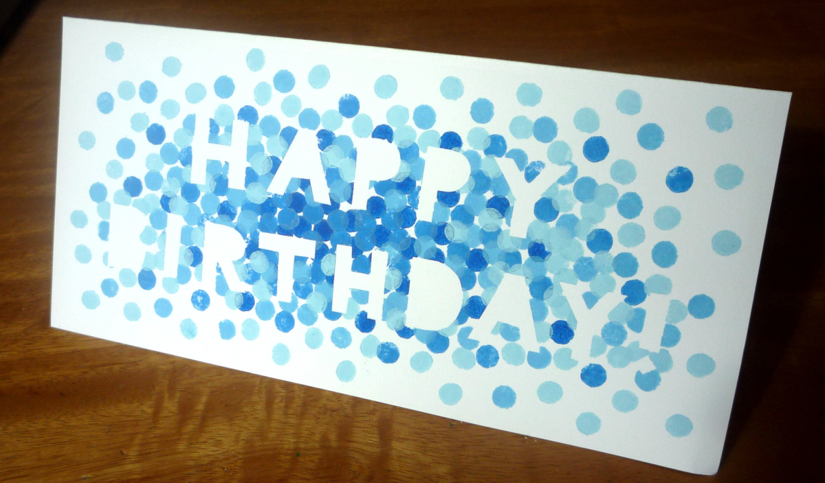 No need to buy expensive stamps you might not use again. This birthday card was made using a pencil eraser as a stamp!
