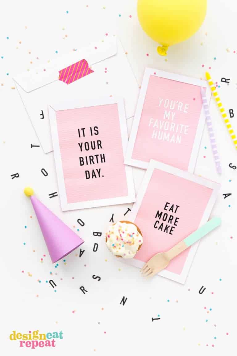 Melissa created these letterboard style birthday cards by making her own letter stickers. You could also purchase stickers if you can find a font you like!