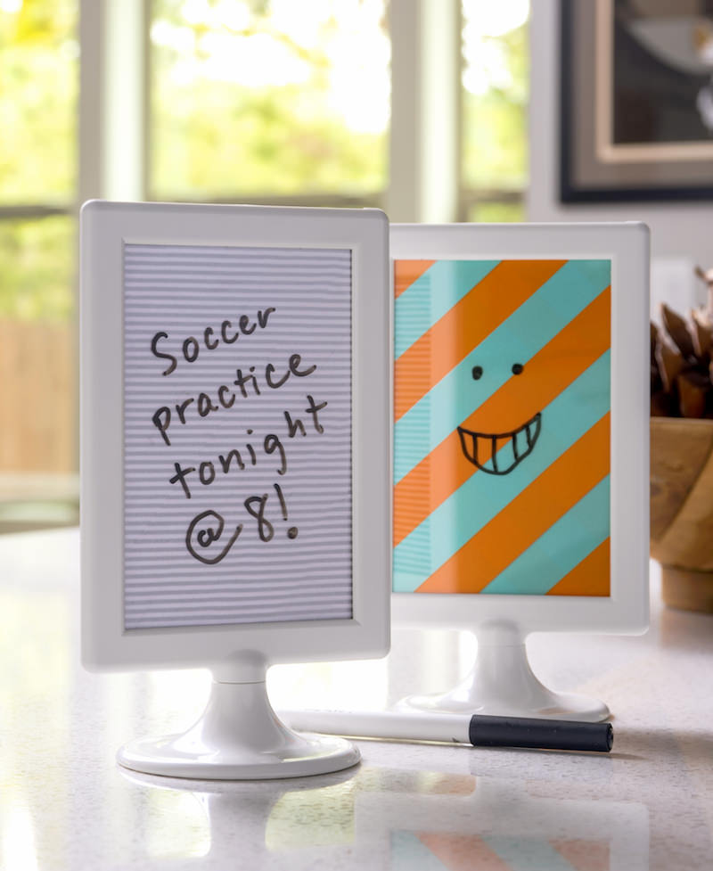 Make your own dry erase board the easy way! This DIY dry erase board was created from a $1 frame and uses washi tape. Even a beginner crafter or kid can do this project.