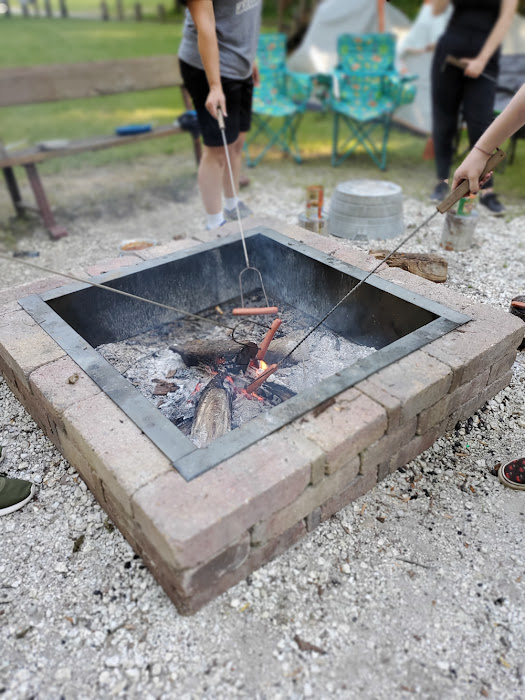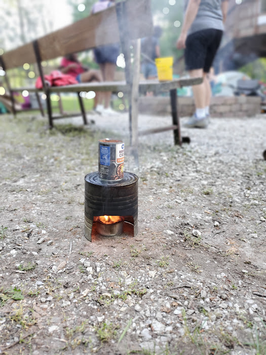 For dinner that night, everybody heated up chili on their tin can stoves and used it to make either walking tacos or chili dogs. The placement of these stoves was very problematic, as the fire pit area was clearly not designed to accommodate nine tiny and hot stovetops. Fortunately, nobody stepped on a stove and nobody fell into the fire, so that's as much as anyone could ask!