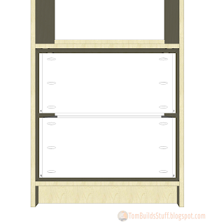 Build the 2 drawer boxes for the closet system as shown using wood glue and 1" Kreg Pocket Screws. For detailed instructions please read my post on how to build drawer boxes.