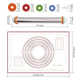 Pepe Nero - Full kit adjustable wood rolling pin with 4 thickness rings 18 inch 5 stainless cookies ring silicon nonstick baking silicone mats 157 x 196 inch dough cutter 10 inch 7 decoration pens pizza roller Premium quality our dough rollers are made from the highestquality hardwood to ensure not only increased durability but an ultrasmooth rolling surface as well The silicone mat is heatresistant and features precise measurements to help you with more complex baking projects The solution is here if youre looking for a rolling pin set with silicone baking mats that can be used for anything from baking to pizza dough pasta cooking or fondant tools look no further than our wooden rolling pin and non slip mat Featuring easily adjustable thickness rings the dough roller can be used for any baking need you have