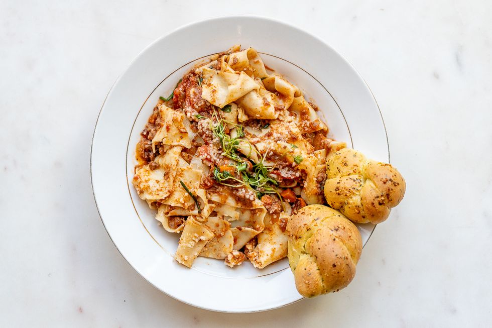 Pizzas can be made with gluten-free crust; mozzarella and ricotta cheeses are actually dairy-free alternatives; and all instances of Bolognese, as well as the aforementioned balls, are made with Impossible "meat." Soy-free and nut-free annotations are also doable here, and dishes will rotate regularly. Baia also offers five large batch cocktail recipes along with a small selection of local beers and wines by the bottle. It's all available now for takeout and delivery in San Francisco.