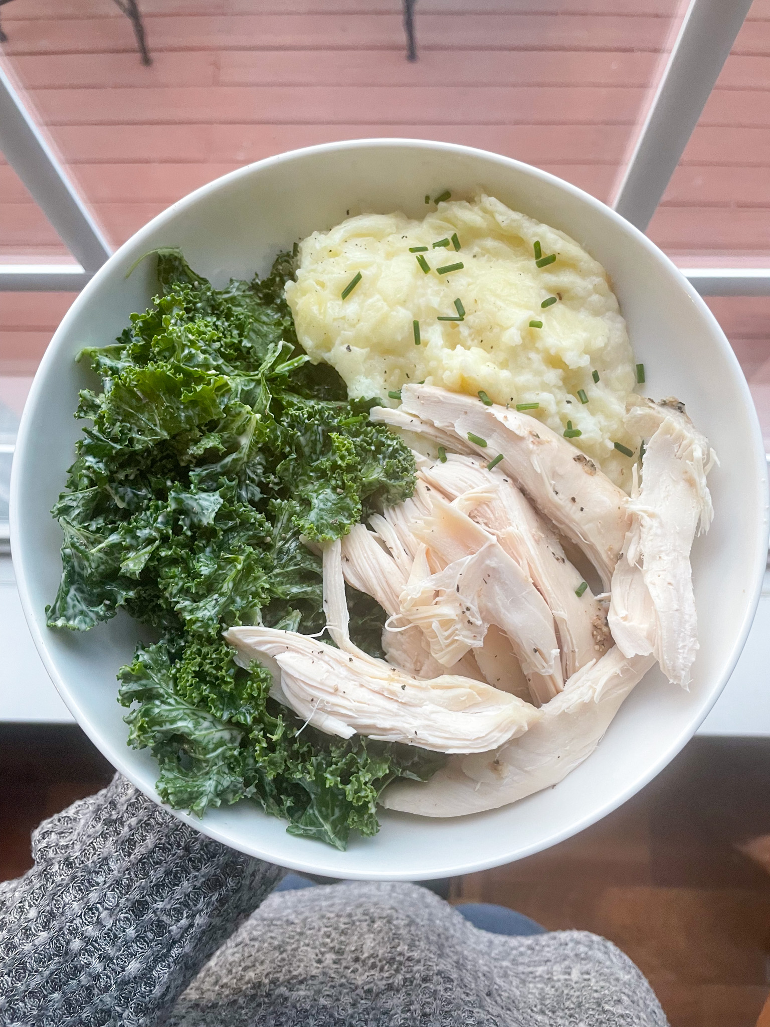Hailey requested mashed potatoes, so I used this recipe, which was delicious. I actually made them in the morning, added a little extra milk, then kept them covered in the fridge for the day. I took them out and let them sit on the counter for an hour before heating them in the oven at 350 for 30 minutes and serving them. They were great! I roasted a whole chicken in the Precision Dutch Oven and massaged Caesar dressing with kale for a side salad.