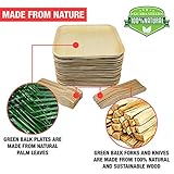 Party favorite serving party dishes with green balk palm leaf plates and wooden cutlery will surely be a delight for your guests who will be talking about them Our disposable palm leaf plates and cutlery are upscale and will impress your guests in any outdoor or indoor party setting such as events holidays picnics birthdays anniversaries christmas weddings camping barbecue bbq and more