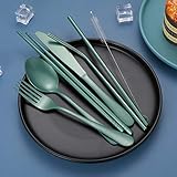 8piece reusable utensils with caseincludes 1 x dinner knife1 x dinner fork 1 x dinner spoon1 x soup spoon 1 pair of chopsticks 1 x bent straw 1 x straight straw 1 x straw brush plus 1 x travel flatware carrying casesuitable for restaurant travel camp school or workplace classic design delicate appearance match any type of your tableware allows you to enjoy every meal wherever indoor or outdoor during your trip