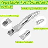 Easy to use portable simply place the vegetable on your cutting board glide the cutter vertically to obtain the thin strips Green onion cutter is also easy to clean after use and lightweight everyone can use it to cook After using you can hang it up on the wall Material this shred silk cutter is made of highquality stainless steel it is safe high hardness sharp blades durable and not rusty