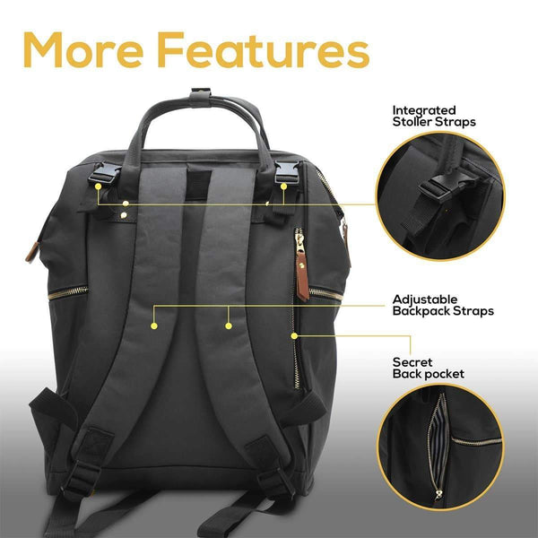 - Fashionable gold colored metal zipper with faux leather puller for easy maneuver. Rest assured your baby diaper backpack will never fail on you when you need it to work.