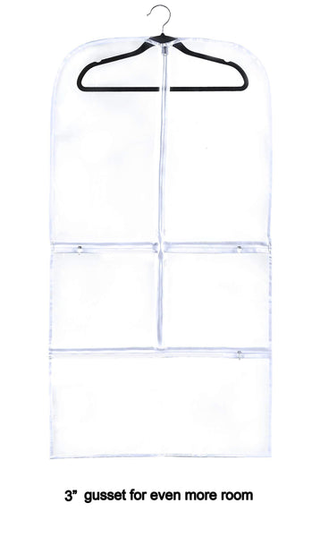 Clear Gusseted Suit Garment Bag 20 inch x 38 inch x 3 inch Dance, Dress, and Costumes Hanging Travel Storage for Clothes, Shoes, and Accessories Water-Resistant Organizer