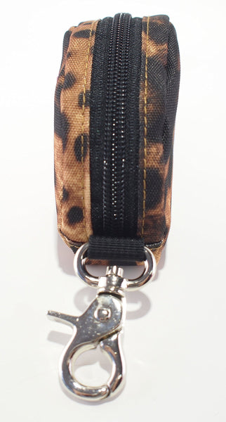 - Rough Enough Classic Coin Change Purse is special designed with 3 different fabrics styles. 1000D polyester Cordura fabric in strong and durable includes Black, Red and Camo. Folk cotton fabric material with soft basic SELF feeling. Leopard printed pattern in 600D polyester with PU coating point to fashion stylish. With real nylon inner lining as double layer inside. Hand carrying with metal clip on fasten buckle plus YKK zipper pull closure.Size: 4.5 x 1.5 x 2.8 inches