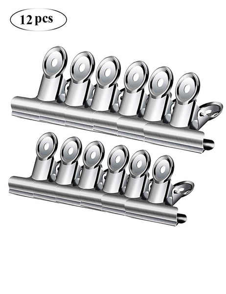 - MULTIPLE USE: This set of clips are not only used for sealing snacks,bags etc., but also used for clamping paper or documents that gives you a clear space for better work or study. A small hole in a round clip which will be easy for you to hang the clip on walls, doors or bulletin boards.