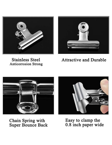 - DURABLE AND STRONG: Superior quality stainless steel metal clips, rustproof, they're won't easily break, strong springs create solid holding power and high capacity.
